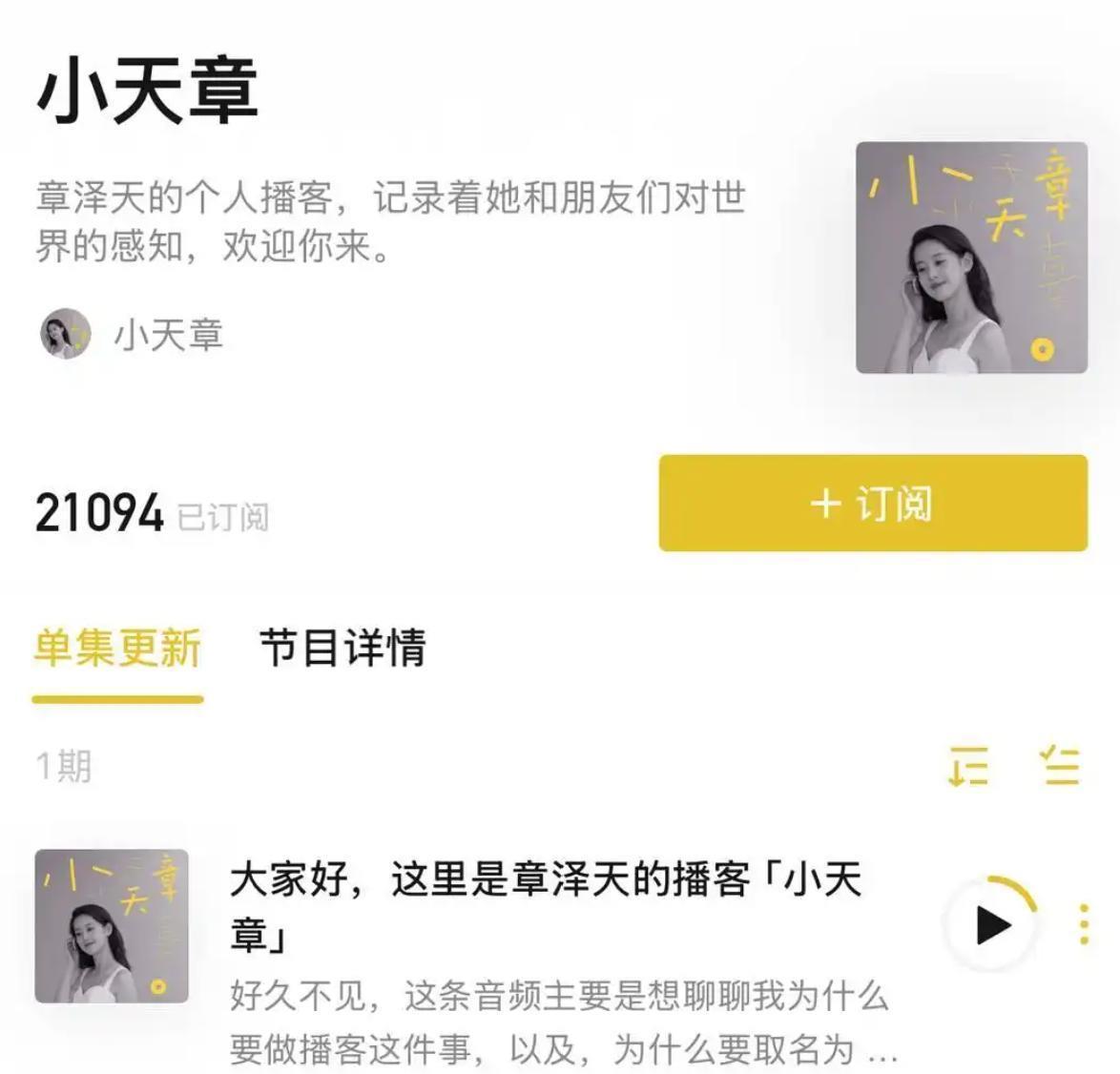 最近,章泽天个人博客《小天章》上线。因名人效应,此事也成为中文播客圈的现象级事件。有数据显示,在上小时内,小宇宙订阅数逼万,播放量突万,同步运营的小红书账号粉丝量飙升.3万,相关话题两度登上微博热搜,阅读量累计亿。